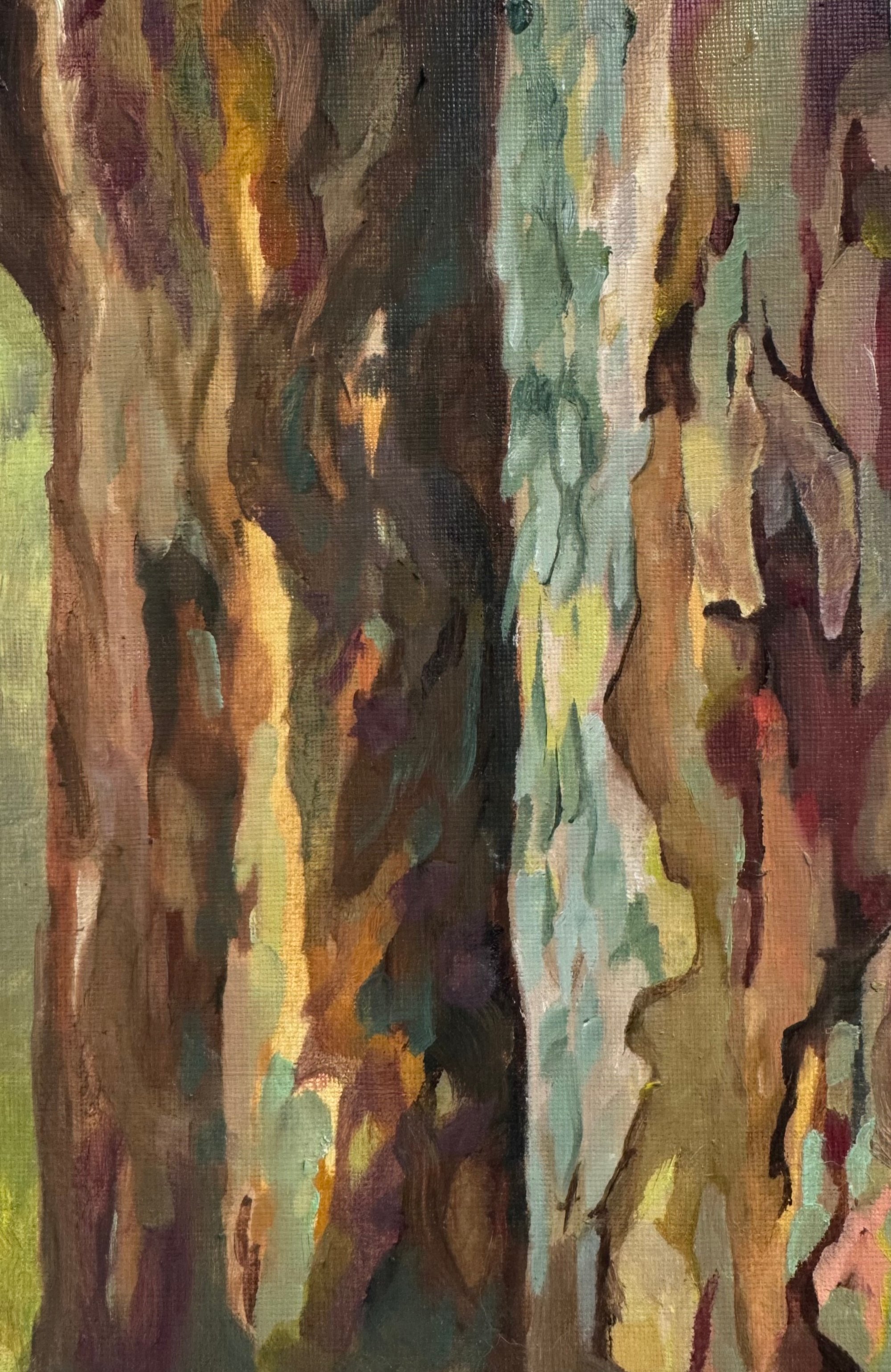 "Part of the sketchbook, a small tree study to capture hidden colour that is so easy to walk past. I like to paint on oil paper when working things out for larger pieces to come. After becoming quite stuck in familiar painting habits this study has helped me push some of my boundaries with colour" - LBetts